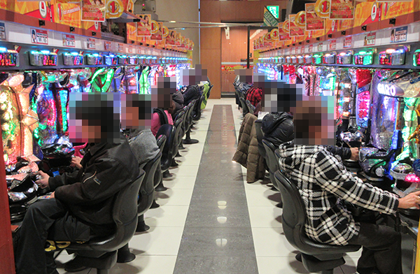 じっくりと遊技を楽しめる1円パチンコもにぎわいは大きい。