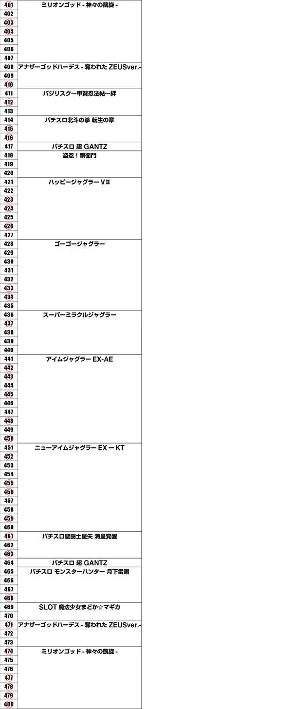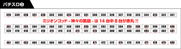 「ミリオンゴッド-神々の凱旋-」は14台中8台が赤丸。