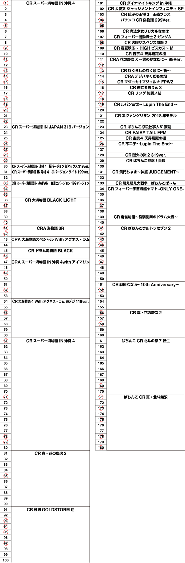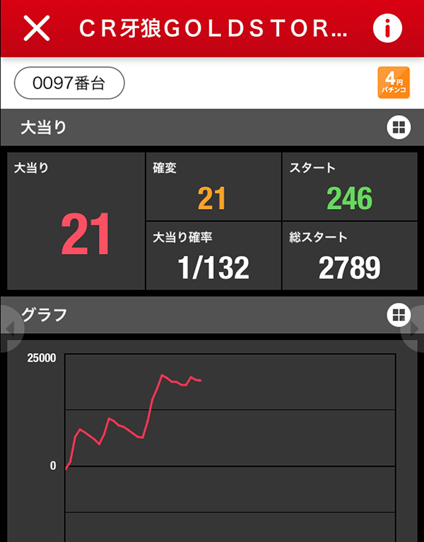 「CR牙狼GOLDSTORM翔」も半数近くが赤丸と好調。