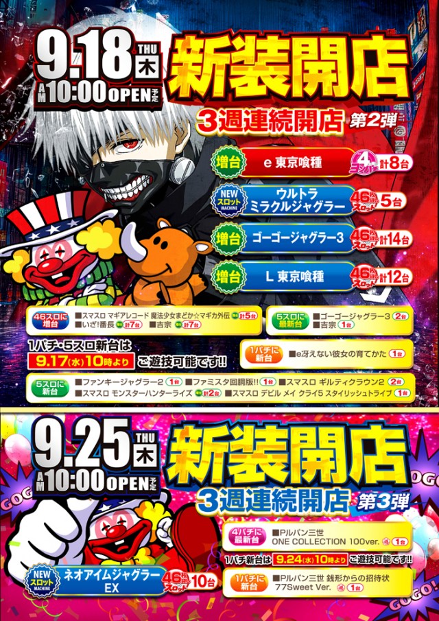 9月25日🌈新装開店はミンゴヘGO🌈ジャグラー最新台登場🌈