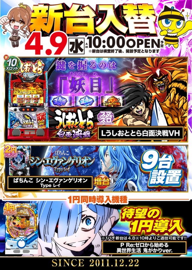 明日4月9日🌈新台入替🌈10時開店予定🌈389台設置店