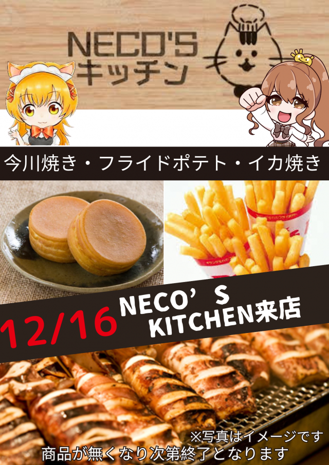 明日12月16日🌈ネコズキッチン来店🌈10時開店予定🌈