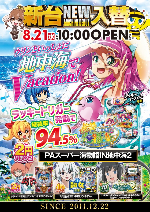 8/21(水)新台入替🌈最新台が2パチ10スロで打てる🌈