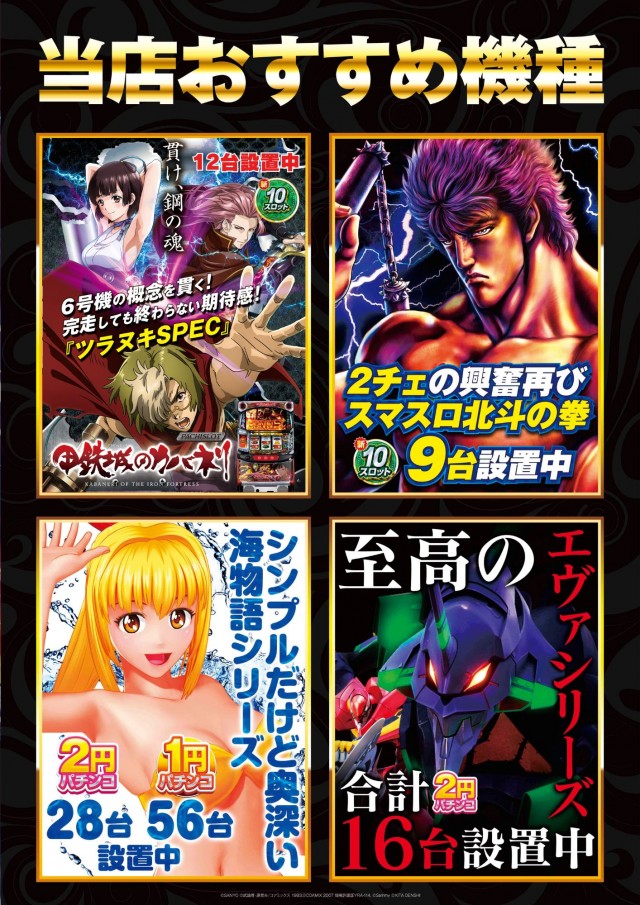 11/7(火)新台入替10時開店🌈10スロで最新機種が打てる