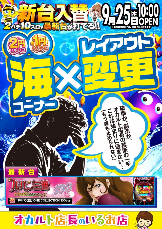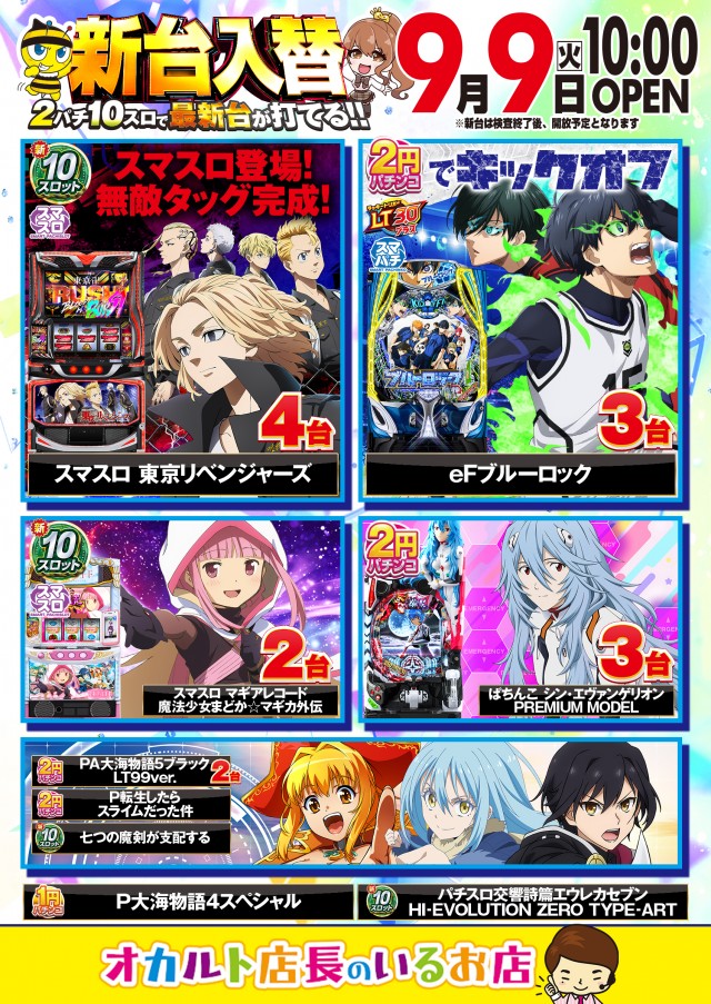 明日 9/25(木)新台入替🎈10時開店🌈