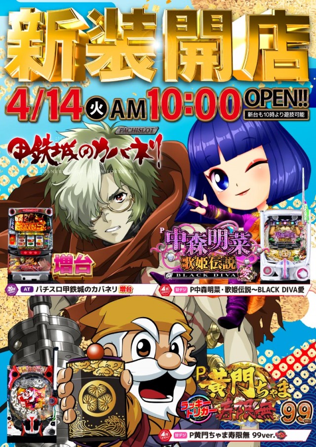 明日新装開店🎊4Pに甘デジ中森明菜&黄門ちゃま導入❗
