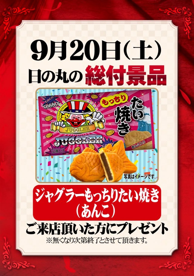 本日総付景品🌟ジャグラーもっちりたい焼き配布します🐟🎁