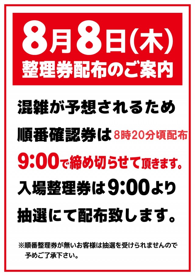 28日まで・・・残り3日!!今から整理券案内をチェック👍