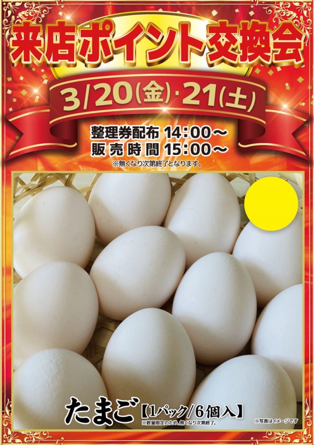 9:35~順番確認券配布 9:40~店頭抽選(※順番確認券をお持ちの方) |