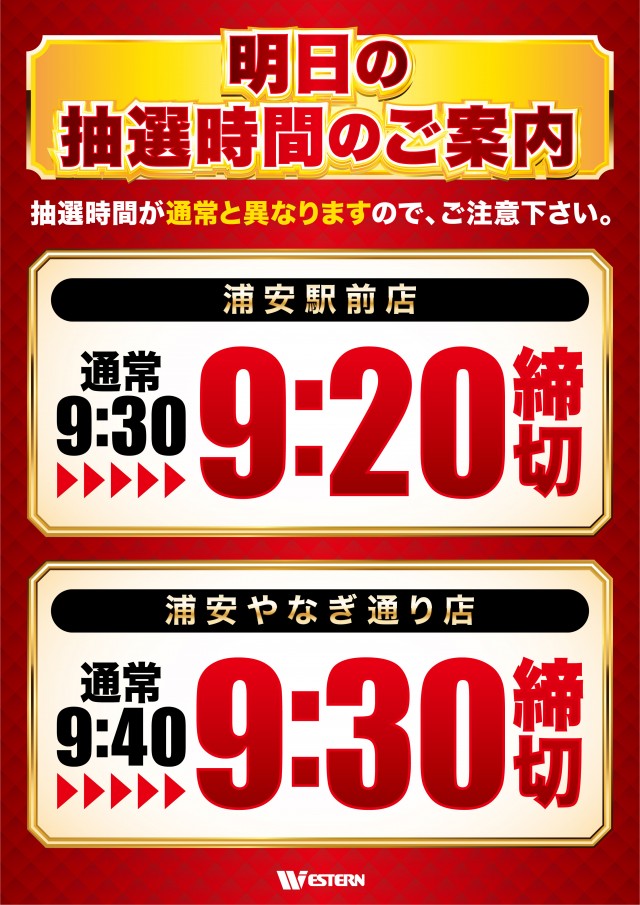 ウエスタン浦安やなぎ通り店のお知らせ一覧