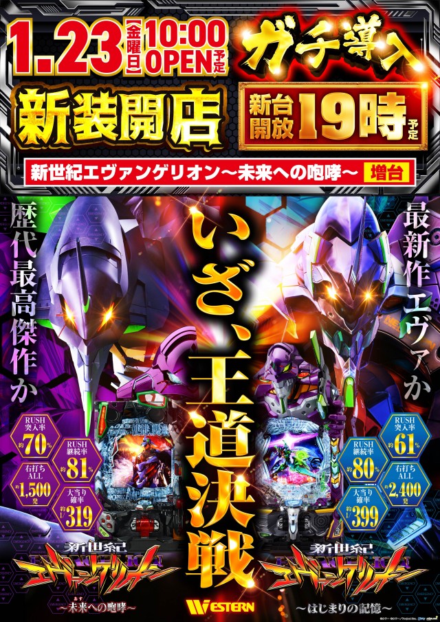 💥ガチ導入💥1/23Pエヴァ15増台!新台19時開放予定⏰
