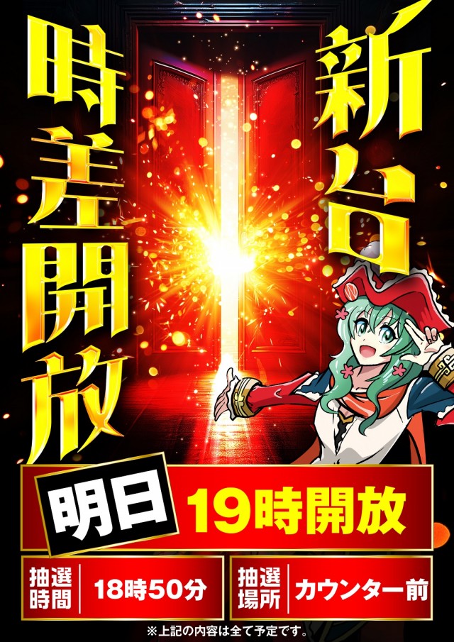 🌈2日連続!新装開店!新台開放は19時予定🌈