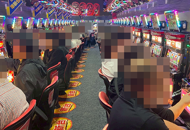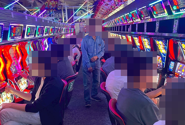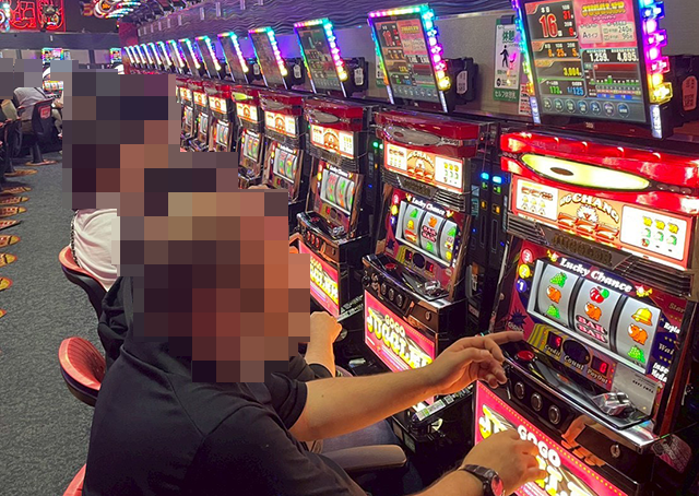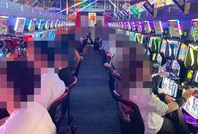 すべての台が稼働し、楽しげなプレイヤーが並んでいた「ゴーゴージャグラー3」。