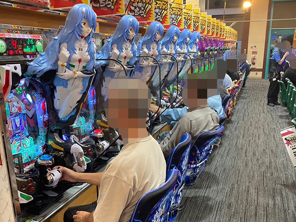 17時半ごろの4円パチンコでは、「e北斗の拳10」や「ぱちんこ シン・エヴァンゲリオン Type レイ」、「新世紀エヴァンゲリオン〜未来への咆哮〜」などでプレイヤーが華麗なパフォーマンスを披露。微笑ましいシーンを随所で目にしている。