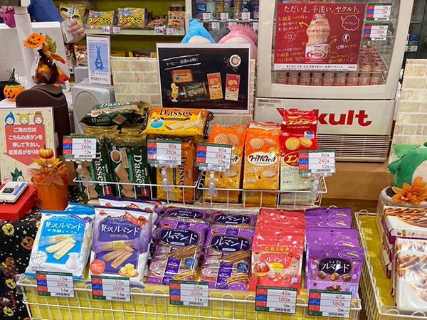 景品コーナーにはドリンク類や秋らしいお菓子が用意されており、おみやげ選びも存分に楽しめることだろう。