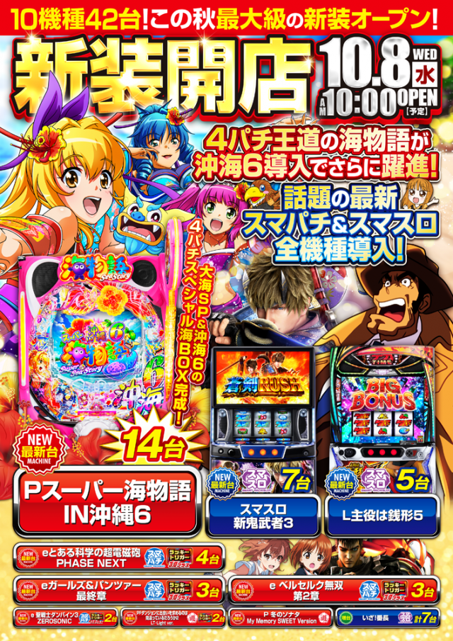 本日新装開店!最新機種を網羅全11機種44台導入