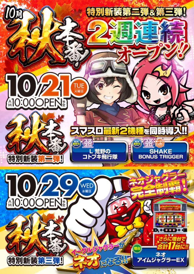 あす2週連続新装開店 第1弾最新スマスロ2機種導入