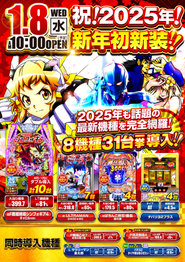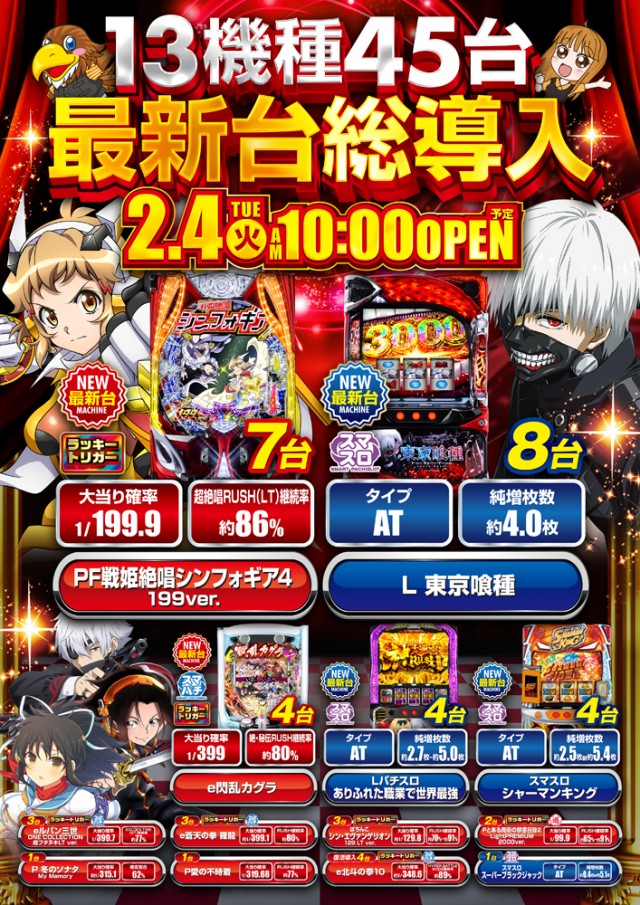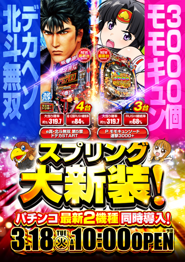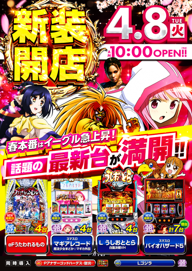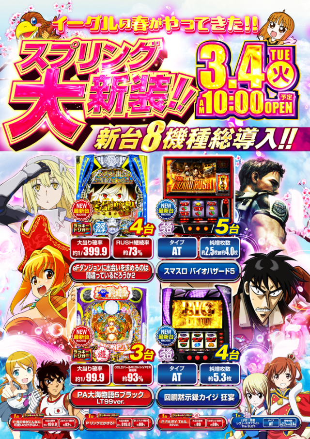 明日3月第1弾新装開店 8機種20台が新たにイーグルの仲間に