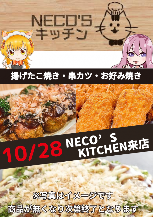 明日🌝10月28日🌝キッチンカー来店10時オープン🌝
