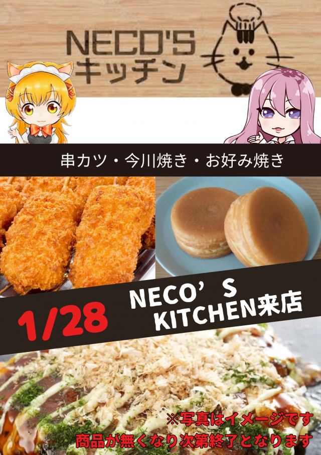 明日🌈1月28日🌈キッチンカー来店🌈10時 OPEN