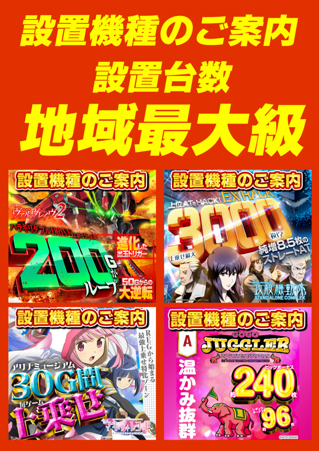 3月31日10時オープン♪ 低貸コーナー新機種導入!