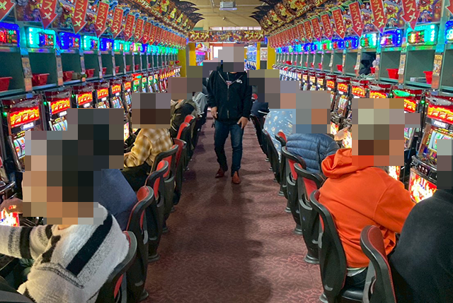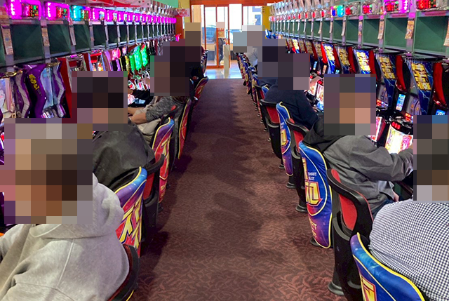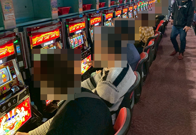 老若男女を問わずに、大勢のプレイヤーが遊技を楽しんでいた「アイムジャグラーEX」。