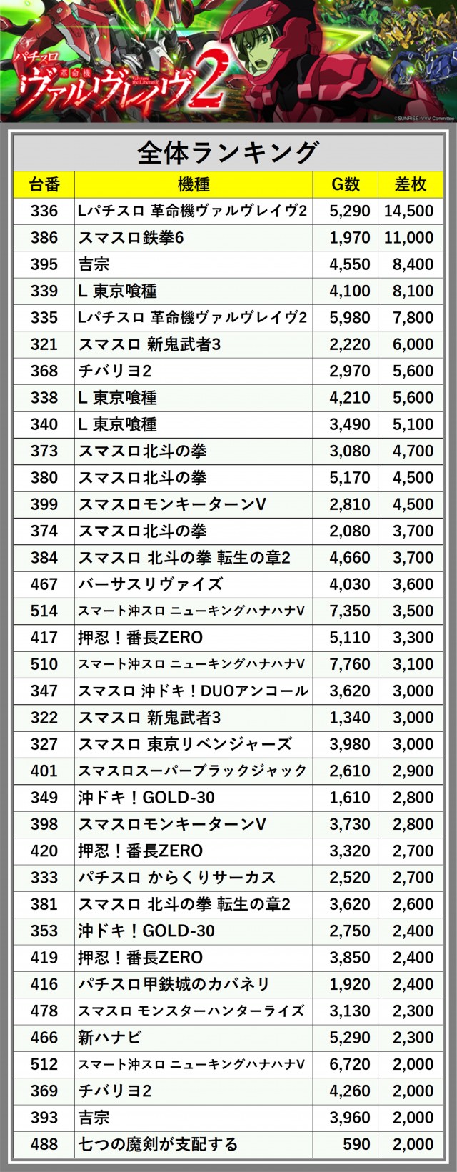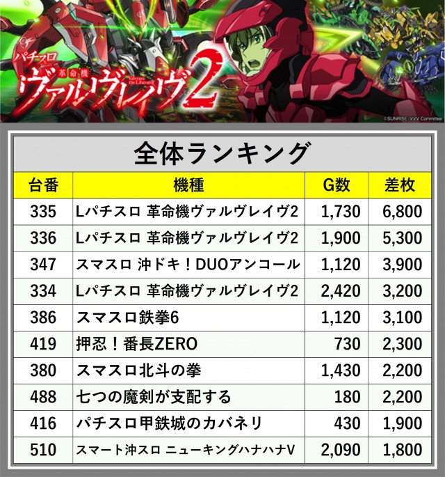 ※差枚数順に掲載しています