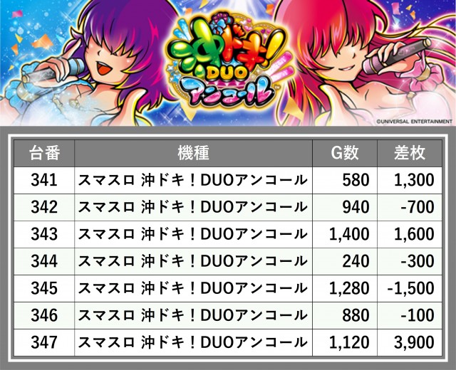 厳選された取材対象機種をはじめ、その他スロット全体から好記録が飛び出した!プレイヤーが楽しんだ1日を下記データにて振り返ってみて欲しい。