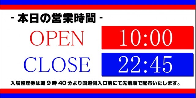 本日は新装開店12時OPEN!新台3機種導入予定です!
