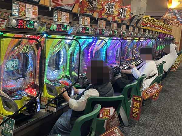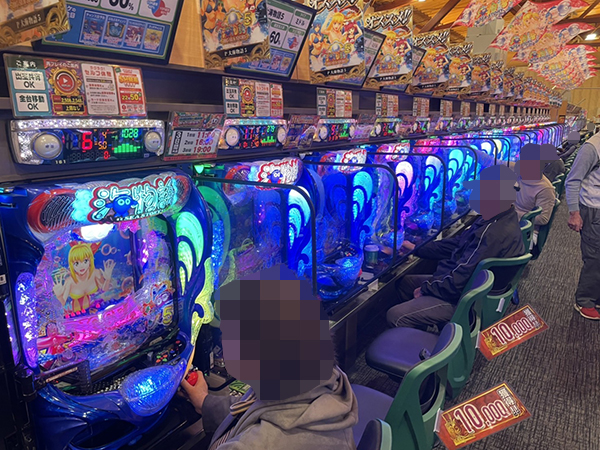 店内では貸し玉料金を問わず様々な機種で、心ゆくまで楽しむプレイヤーの姿が見られた。