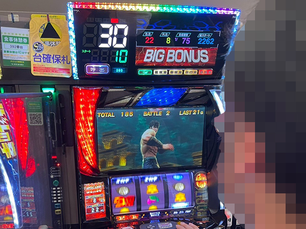 1000円/46枚パチスロを見渡すと、「スマスロ北斗の拳」や「スマスロモンキーターンV」で理想的な展開を迎えたプレイヤーが見られ、シマ全体に華やかな光景が広がっていた。