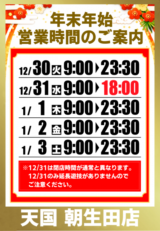 パチンコ天国朝生田本店のお知らせ一覧