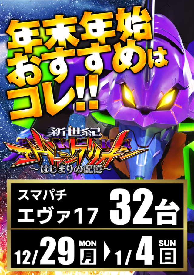 12月22日(月)新台入替!「エヴァ最新作導入!」