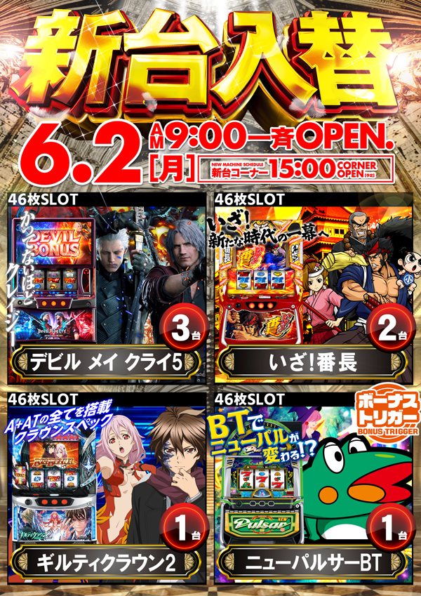 ☆☆☆6月2日(月)☆新台入替☆☆☆