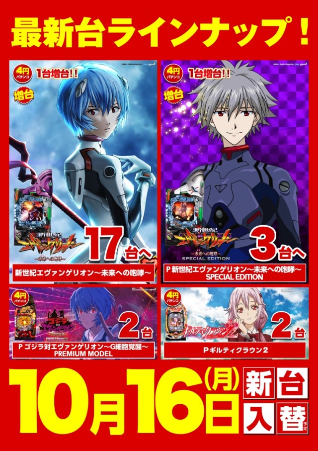 🌟10/16㈪新台入替🌟本日もご来店お待ちしております🌟