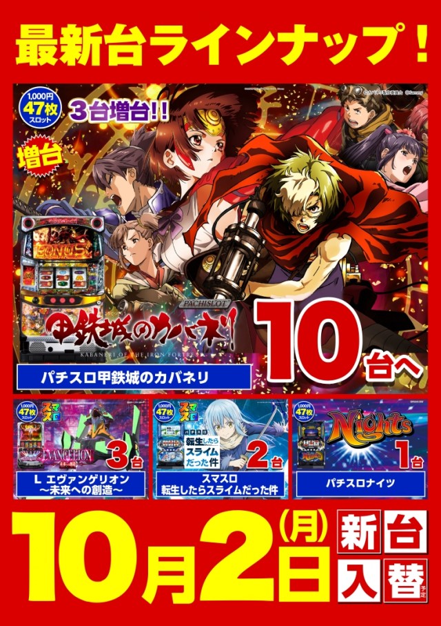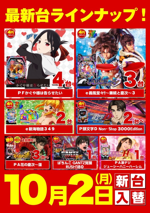 🌟10/2㈪新台入替🌟本日もご来店お待ちしております🌟