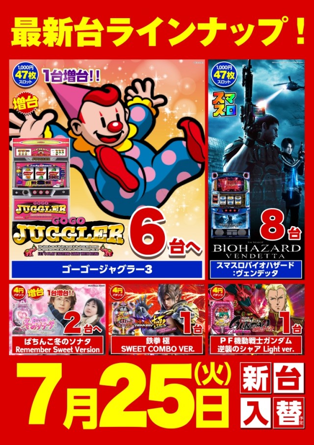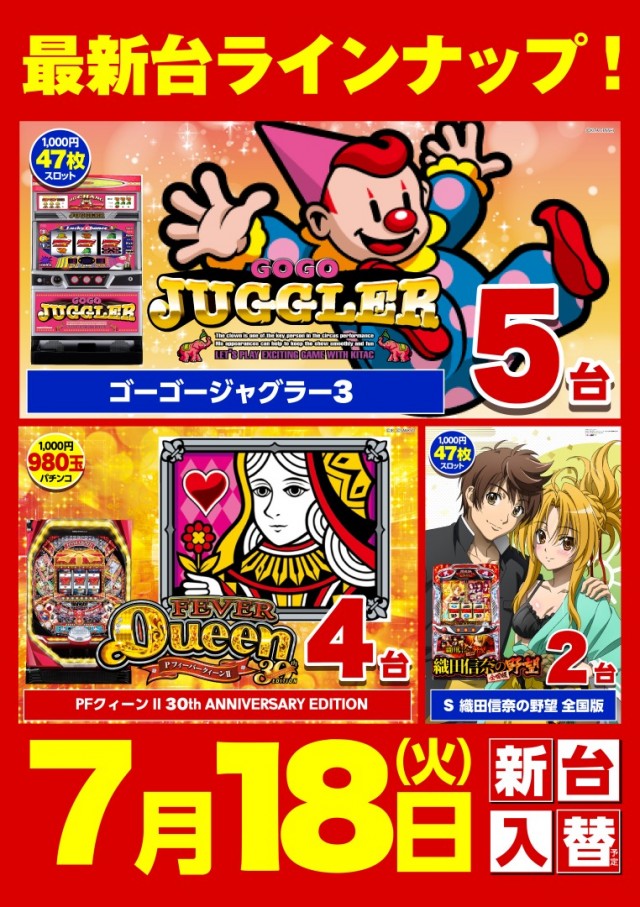 4パチ223台/ 1パチ128台/0.4パチ32台/ 1000円46枚スロ190台/5スロ30台/2.5スロ22台