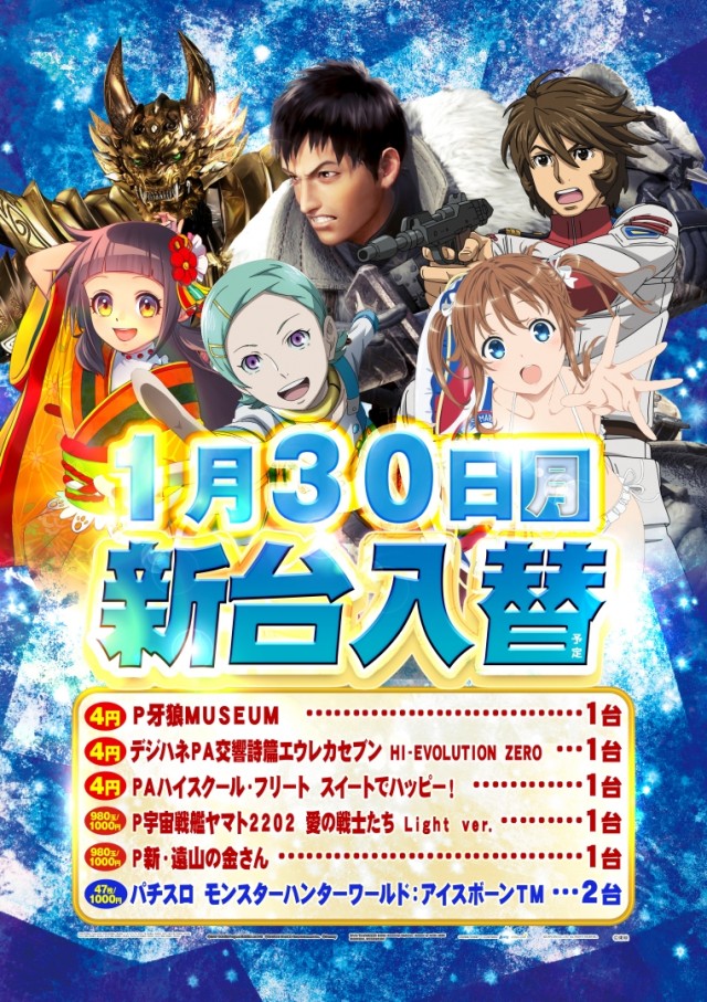 4パチ223台/ 1パチ128台/0.4パチ32台/ 1000円46枚スロ190台/5スロ30台/2.5スロ22台