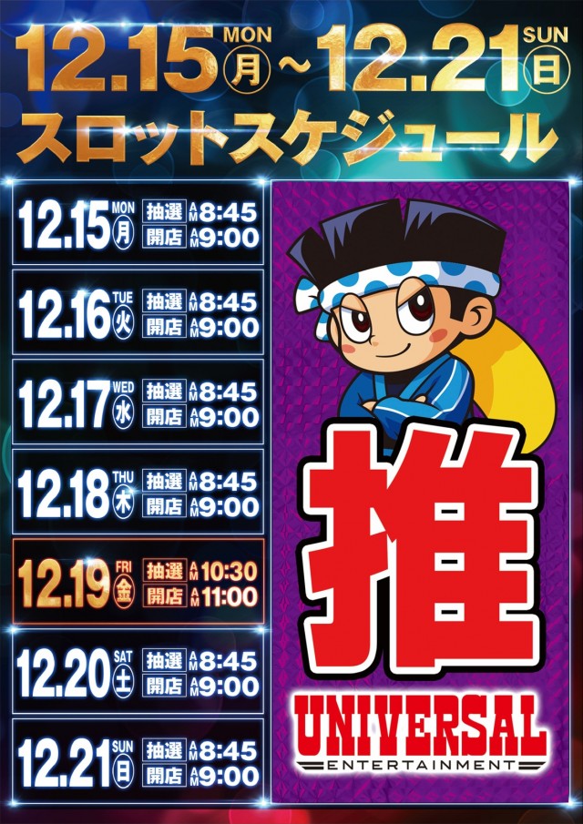 1位 12月14日(日) 2位 11月24日(月) 3位 12月13日(土)