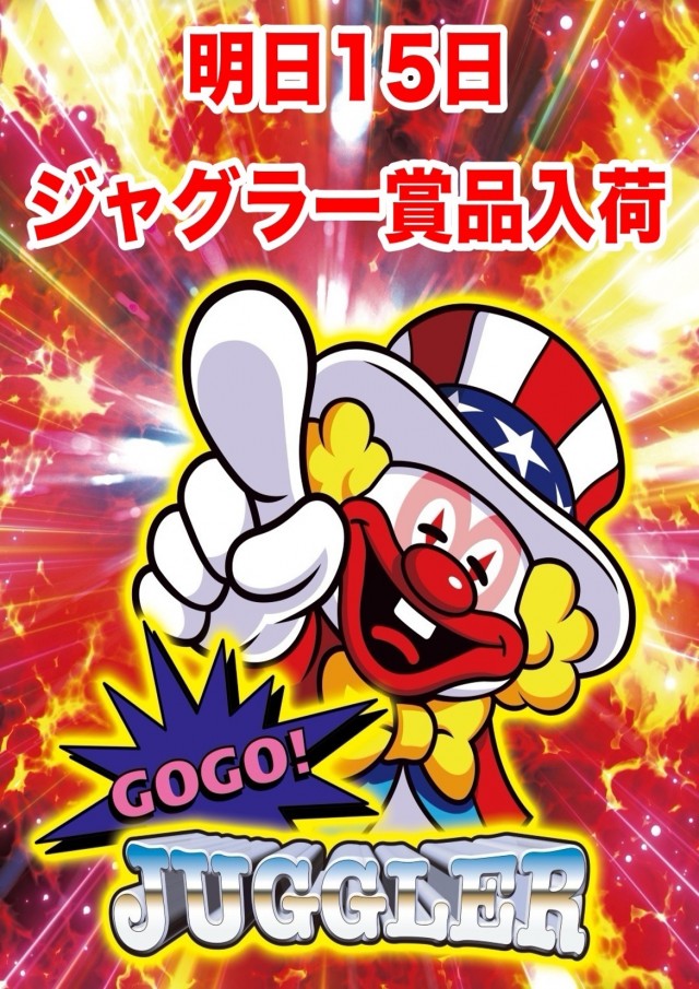 明日15日、ジャグラー賞品入荷!