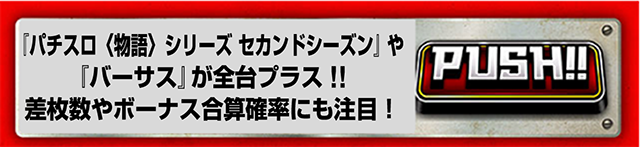 2台ずつ設置されている『バーサス』と『パチスロ〈物語〉シリーズ セカンドシーズン』が全台プラス。平均ゲーム数はともに6000Gを上回った。