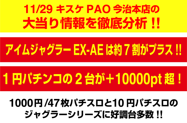 11月29日の日刊ぱちタウンは「キスケPAO今治本店」をピックアップ。