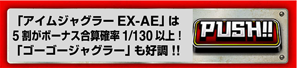 『アイムジャグラーEX-AE』はプラスを記録した17台のうち、13台が+1000ptオーバー。9台はボーナス合算確率が1/130以上であった。