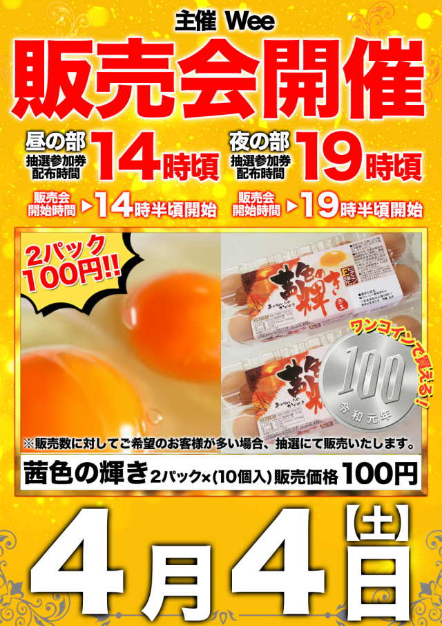 🌟生活応援販売🌟タマゴ2パック100円💞4月4日開催