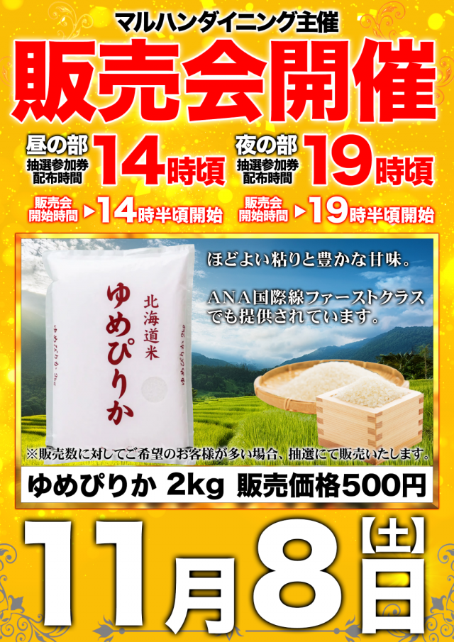 明日、"ゆめぴりか"ゲットチャンス❗❗販売会開催🍚
