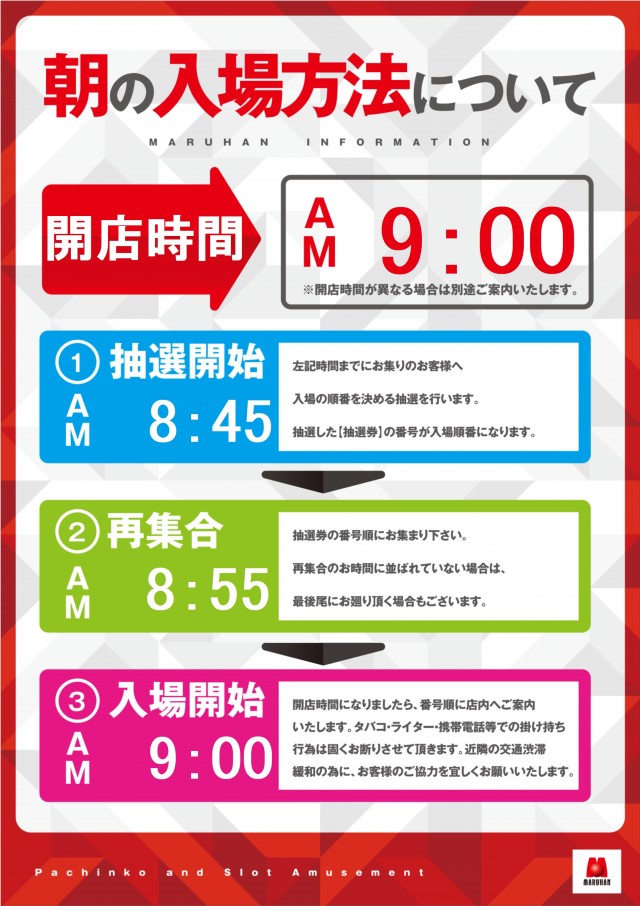 朝の抽選は8時45分から!ご来店お待ちしております❗❗