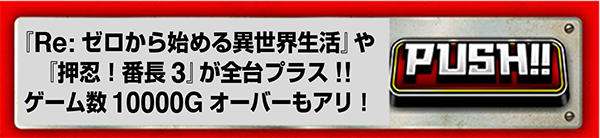 『押忍!番長3』と『Re:ゼロから始める異世界生活』、『アナターのオット!?はーです』の3機種は全台プラス。