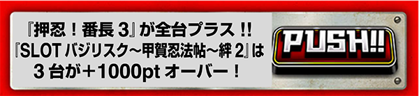 2台設置の『押忍!番長3』は2台がともにプラスptを記録。