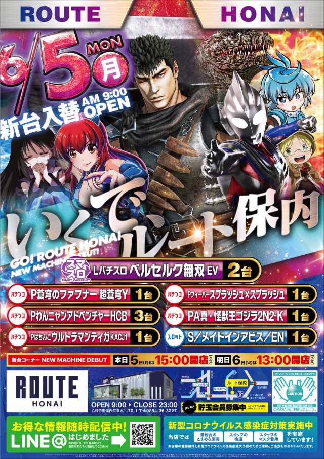 ✨✨✨NEW!明日は【ルート保内】の新台入替(予定)✨✨✨