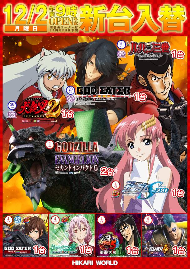🌏本日新台入替🌏9機種10台導入予定🌽